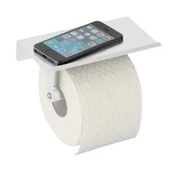Mit dem Toilettenpapierhalter mit integrierter Smartphone-Ablage finden Handy und Tablet endlich einen komfortablen und sicheren Platz im Badezimmer. Der schöne Papierhalter in Weiß ist aus hochwertigem, mattiertem Stahl gefertigt und hält die Toilettenpapierrolle stets dekorativ griffbereit. Die praktische Ablage für Tablet, Smartphone und Co. bewahrt die teuren Geräte zuverlässig auf. Im Lieferumfang ist das Montagematerial enthalten.
