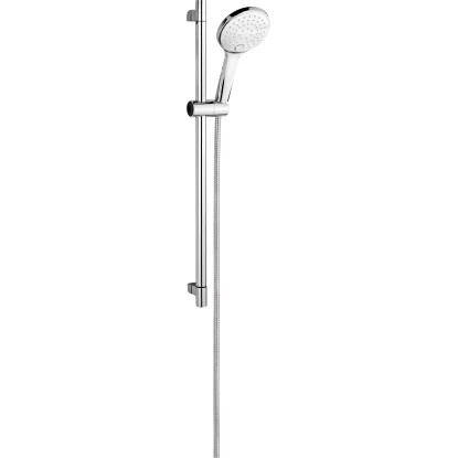 Die Multifunktions-Handbrause ist herausnehmbar und hat drei verschiedene Funktionen. Sie können ganz einfach per Druckknopf zwischen den drei Strahlarten – Spray, Massage, Spray-Massage – variieren. Die Anti-Kalk-Noppen verhindern effektiv Kalkablagerungen. Das 60 cm lange Steigrohr mit einem Ø von 25 mm wird oben und unten an der Wand befestigt. Der Brauseschlauch aus Edelstahl ist 150 cm lang und bietet somit einen großen Aktionsradius. Der Anschluss-Schlauch ist für Anschlüsse mit 18,6 mm (G 1/2) geeignet. Das Befestigungsmaterial ist im Lieferumfang enthalten.