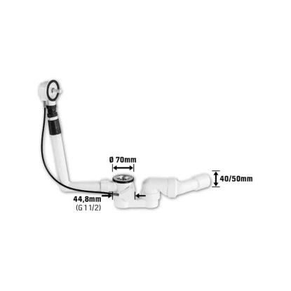Die komfortable Excentergarnitur ist eine flexible Ab- und Überlaufgarnitur für die Badewanne. Sie bietet einen geruchsverhindernden Siphon mit Überlaufrohr und Stopfen. Der Ablaufanschluss an der Wanne hat ein Maß von 44,8 mm (G 1 1/2). Das integrierte Überlaufrohr wird am Überlaufloch der Wanne angebracht. Zum Anschluss an das Abflussrohr steht ein Durchmesser 40 mm oder 50 mm zur Verfügung. Ein praktischer Drehgriff am Überlauf ermöglicht das Öffnen eines Excenterventils oder Ablaufventiles. Ein in der Garnitur enthaltener Stopfen dient zum zuverlässigen Verschließen. Der Durchmesser des Stopfens beträgt 70 mm. Die Ablaufgarnitur besteht aus praktischem, weißen Kunststoff. Sie weist ein geringes Gewicht auf, bei hoher Stabilität. Das passende Excenterventil ist separat erhältlich.