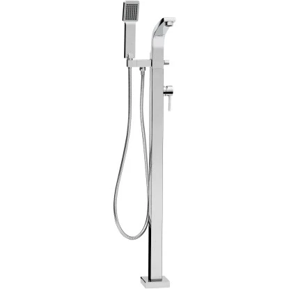 Die Standarmatur für freistehende Badewannen mit gebogenem Auslauf und flacher Handbrause.