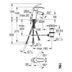 Die Grohe Einhand-Waschtischbatterie Eurosmart S-Size besitzt eine integrierte Zugstangen-Ablaufgarnitur und eignet sich ideal für Unterschrank-Warmwasserbereiter.