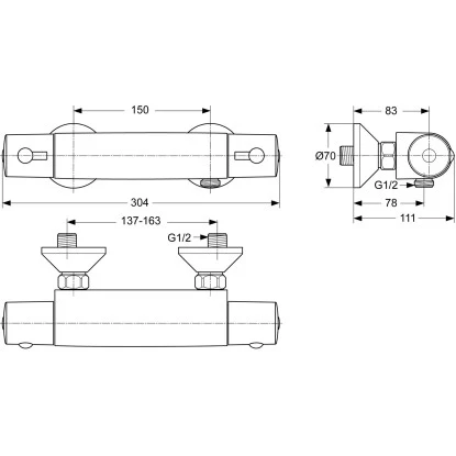 Ideal Standard Thermostat-Armatur Ceratherm 50 Verchromt