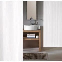 Duschvorhang (100 % Polyester) im trendgerechten, attraktiven Design. Wasserabweisend ausgerüstet und bei +40 °C waschbar. Verstärkte Lochleiste mit stabilen Ösen. Beschwerungsband im unteren Saum. Schonwaschgang bis +40 °C, nicht bleichen, nicht für Trockner geeignet, nicht heiß bügeln. Vorsicht beim Bügeln mit Dampf, keine Chemischreinigung möglich.