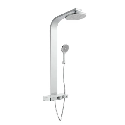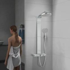 Duschsystem mit hoher Funktionalität durch 3 in 1-Thermostatarmatur mit Ablage inklusive Umsteller