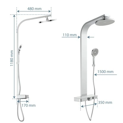 Duschpaneel: Edelstahl Hochglanzverchromung, 110 x 1120 x 23 mm (B x H x T)