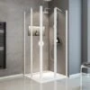 Der Schulte-Eckeinstieg der Serie Sunny in der Farbe Alpinweiß mit klarem Echtglas in einer Größe von 180 cm x 90 cm x 90 cm beeindruckt mit insgesamt vier großzügig geschnittenen Echtglasscheiben (ESG). Diese sind äußerst widerstandsstark, die beiden großflächigen Drehtüren sind mit dominanten Aluminiumprofilen an den feststehenden Seitenteilen befestigt, was sowohl eine hohe Stabilität als auch einen komfortablen Einstieg gewährleistet.