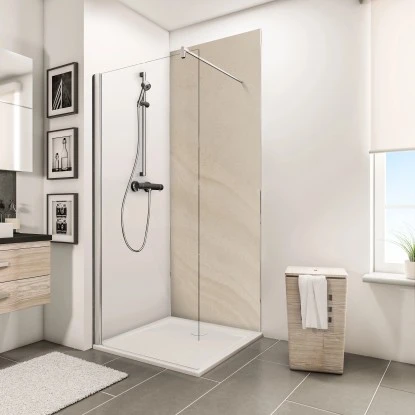 Wünschen Sie sich ein modernes Bad mit einem außergewöhnlich stilvollen Look? Dann ist eine Wandverkleidung der Serie DecoDesign des Markenherstellers Schulte das Richtige für Sie. Exklusives Design, authentische Naturdekore und hochwertige Materialien werden in diesen Duschrückwänden vereint. Die fugenlose Wandverkleidung stellt einen exklusiven Blickfang in jedem Badezimmer dar und schafft eine einzigartige Atmosphäre. Trotz ihrer edlen Beschaffenheit erweist sich die Duschrückwand zudem als überaus robust und unempfindlich gegenüber Kratzern, Sonnenlicht und Hitze bis zu 80°C. Bereits bei der Montage überzeugt das Produkt: Mit der ausführlichen Montageanleitung ist die Anbringung unkompliziert und rasch erledigt. Während das Fliesen eines Duschbereichs rund 42 Stunden dauert, können Sie die DecoDesign Platten schon nach etwa zwei Stunden bewundern. Darüber hinaus verursacht die Montage der Wandverkleidung von Schulte weitaus weniger Schmutz als das Erneuern von Fliesen. Ebenso zeitsparend fällt die alltägliche Reinigung und Pflege der beschichteten Dekorplatte aus. An dieser Stelle profitieren Sie erneut von der fugenlosen Oberfläche, da diese generell schmutzbeständig sowie wasserbeständig ist und sich leicht ohne aggressive Reiniger säubern lässt. Die Produkte der Serie DecoDesign können neben der Verwendung als Duschrückwand im Bad auch in allen anderen Räumlichkeiten fugenlos und ohne Fliesen angebracht werden.