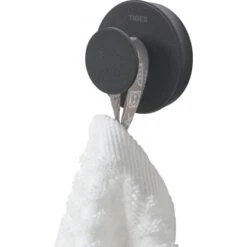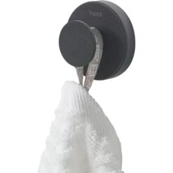 Die Serie Urban in trendigem Schwarz bietet modernes, industrielles Design. Individuellen Touch verleihen Sie den Accessoires mit den beigefügten Dekor-Ringen in Dunkelgrau oder Kupfer. Die Artikel lassen sich einfach mittels der mitgelieferten Edelstahl-Schrauben und Dübel an der Wand befestigen. Alternativ können Sie die Accessoires auch ohne zu Bohren mit dem separat erhältlichen Tigerfix-Befestigungsset Nr. 1 kleben. Der formschöne Haken fügt sich stilvoll in jedes Bad ein.