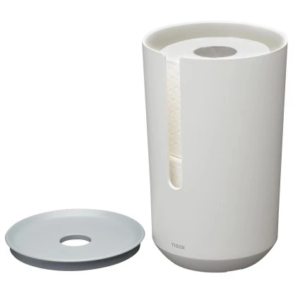 Alles sauber und ordentlich. Dieser Reserverollenhalter in Weiß mit hellgrauem Deckel aus der Reihe Tiger Tess wirkt modern und ist äußerst funktional. Die weichen, abgerundeten Konturen verleihen ihm eine einladende, frische Optik. Die Reserverollen lassen sich problemlos unterbringen, und der Deckel kann dank des runden Lochs leicht geöffnet werden. Aus den Augen, aus dem Sinn. Tiger Tess ist innovativ und modern und besitzt die gewohnte Tiger-Qualität. Diese Produktreihe wurde in unserem Designlabor entworfen und als Good Industrial Design (GIO) ausgezeichnet.
