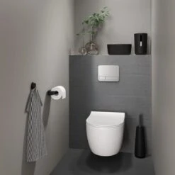 Schlichtheit ist die Quintessenz dieses Designs. Das wohltuende Design erzeugt eine ruhige, gediegene Stimmung im Badezimmer. Dieser schwarze Tiger Tess Toilettenpapierhalter stellt eine absolut harmonische Verbindung zwischen Funktion und Design dar. Kleben Sie ihn an die Wand oder befestigen Sie ihn mit Schrauben und Wanddübeln. Ihre Entscheidung. Tiger Tess ist innovativ und modern und besitzt die gewohnte Tiger-Qualität. Diese Produktreihe wurde in unserem Designlabor entworfen und als Good Industrial Design (GIO) ausgezeichnet.
