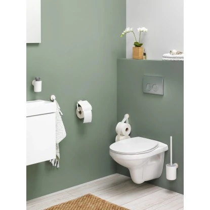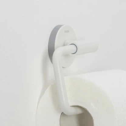 Der formschöne Toilettenrollenhalter ist schwenkbar und fügt sich unauffällig in jedes Bad ein. Die Serie Urban in dezentem Weiß bietet modernes, skandinavisches Design. Individuellen Touch verleihen Sie den Accessoires mit den beigefügten Dekor-Ringen in Grau oder Holzoptik. Die Artikel lassen sich einfach mittels der mitgelieferten Edelstahl-Schrauben und Dübel an der Wand befestigen. Alternativ können Sie die Accessoires auch ohne zu Bohren mit dem separat erhältlichen Tigerfix-Befestigungsset Nr. 1 kleben.