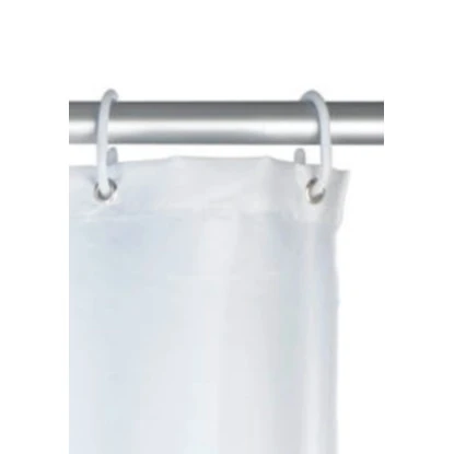 Im Lieferumfang sind 12 weiße Duschvorhangringe aus Kunststoff enthalten.