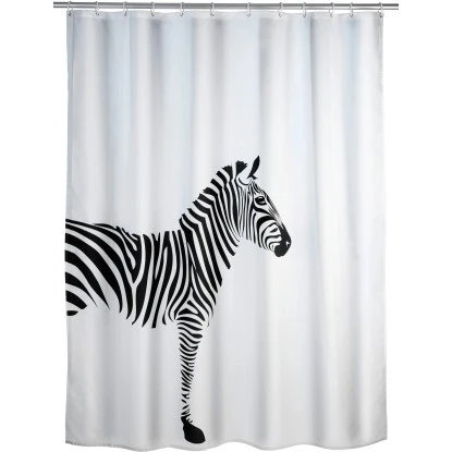 Die Weltneuheit dieses besonderen Vorhangs ist der sensationelle Anti-Schimmel-Effekt. Damit sind die Zeiten von angeschimmelten Duschvorhängen vorbei. Zusätzlich ist der schöne und effektive Helfer auch anti-bakteriell beschichtet. Wenko bringt mit diesem Novum Hygiene und Design ins Badezimmer. Dieses ausgefallene Zebra-Motiv verleiht dem Badezimmer Lebendigkeit und eignet sich mit einer Breite von 180 cm sowohl für Dusche als auch Badewanne. Der hochwertig verarbeitete Duschvorhang ist aus besonders haltbarem Polyester hergestellt. Durch die Oberflächen-Veredelung ist das Material wasserabweisend. Er ist pflegeleicht und bei +30 °C waschbar. Der obere Saum ist mit einer verstärkten Lochleiste und rostfreien Metallösen versehen. Am unteren Ende ist ein umweltfreundliches Gewichtsband aus Gummi (statt Bleikette) formgebend.