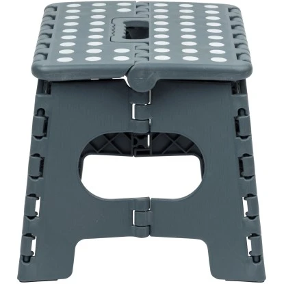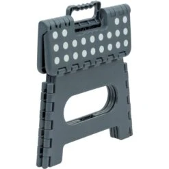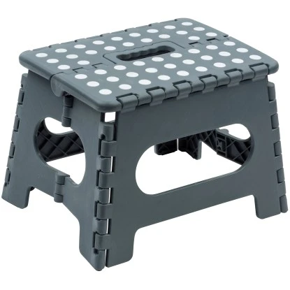 Der praktische Wenko Klapptritt Rutschfest mit gummierten Füßen Grau hilft dabei, auch höher gelegene Gegenstände zu erreichen. Egal ob im Badezimmer, in der Küche oder im Flur, der leichte Tritt mit rutschsicherer (gepunktete und gummierte) Oberfläche sorgt für eine optimale Standsicherheit bei einer Standhöhe von 22 cm – kein unsicheres Balancieren und Wackeln mehr. Die gummierten Füße sind rutschfest, auf diese Weise bieten sie auch auf einem glatten Untergrund, wie zum Beispiel auf Fliesen, sicheren Halt. Ein komfortables Auf- und Absteigen ist durch die großzügige Standfläche ebenso garantiert wie ein ermüdungsfreies Stehen, selbst nach längerer Standzeit. Der robuste Tritt lässt sich bei Nichtgebrauch flach zusammenklappen, ideal für platzsparendes Verstauen. Einen komfortablen Transport gewährleistet der clevere Tragegriff des grauen Helfers. Der moderne, zuverlässige Klapptritt ist aus Kunststoff hergestellt und trägt eine Last bis 150 kg. Ausgeklappt hat der Haushaltshelfer ein Maß von (B x H x T): 29 cm x 22 cm x 22 cm.