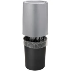 Der innen liegende schwarze Mülleimer kann wie üblich mit einem Beutel befüllt werden, die Hülle inklusive Schwingdeckel wird dann einfach übergestülpt und der Müllbeutel ist verschwunden. Außen ist der Beutel komplett unsichtbar. Zum Entnehmen voller Müllbeutel wird der Außeneimer ganz leicht wieder abgenommen.