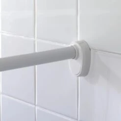 Die verschiedenen Teilstücke werden ineinander gesteckt und anschließend an der Wand mit Schrauben und Dübeln befestigt. Aus Aluminium in Weiß hergestellt hat sie einen extra starken Durchmesser von 25 mm, der für handelsübliche Bad- und Duschvorhänge geeignet ist.