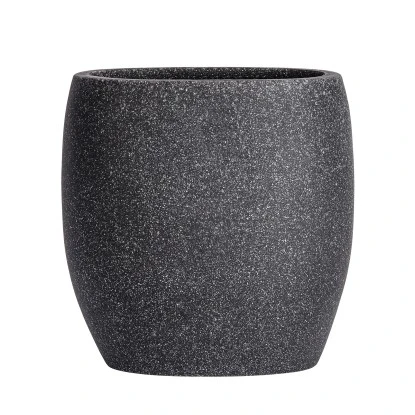Die puristische Bad-Accessoires Serie Puro bringt schlichte Eleganz in jedes Badezimmer. Die Accessoires sind aus hochwertigem Polyresin gefertigt und mit einer ovalen Form versehen. So sind sie stoßfest und auch in Kinderhänden sicher. Im anthrazitfarbenen Zahnputzbecher Puro finden Zahnbürsten und Zahnpasta dekorativ Platz und sind schnell griffbereit. Da greift auch der größte Putzmuffel gerne zu. Wie wäre es mit einem Becher für jedes Familienmitglied?